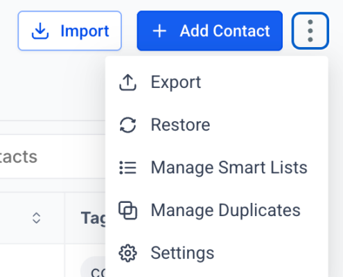 The ‘Manage Smart List’ & ‘Restore’ options have been moved from the header menu!