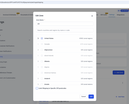 Zipcode Filter Selection for Shipping Zones