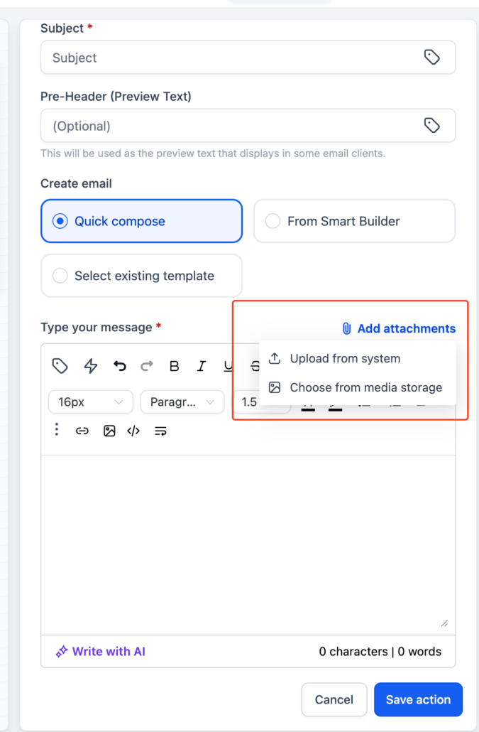 We’ve enhanced the Email Action by integrating it with the Media Library.