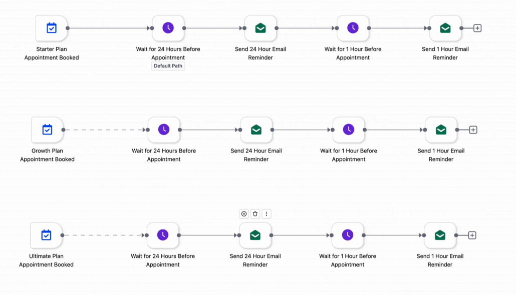 - The default path is utilised for workflow tests as well as for contacts entering from another workflow.