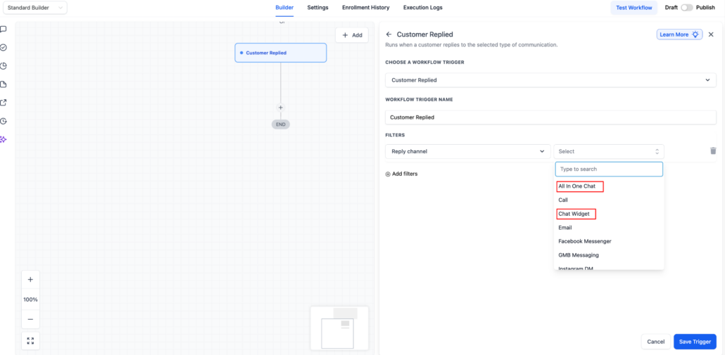 All-in-One Chat widget support in Customer Replied trigger