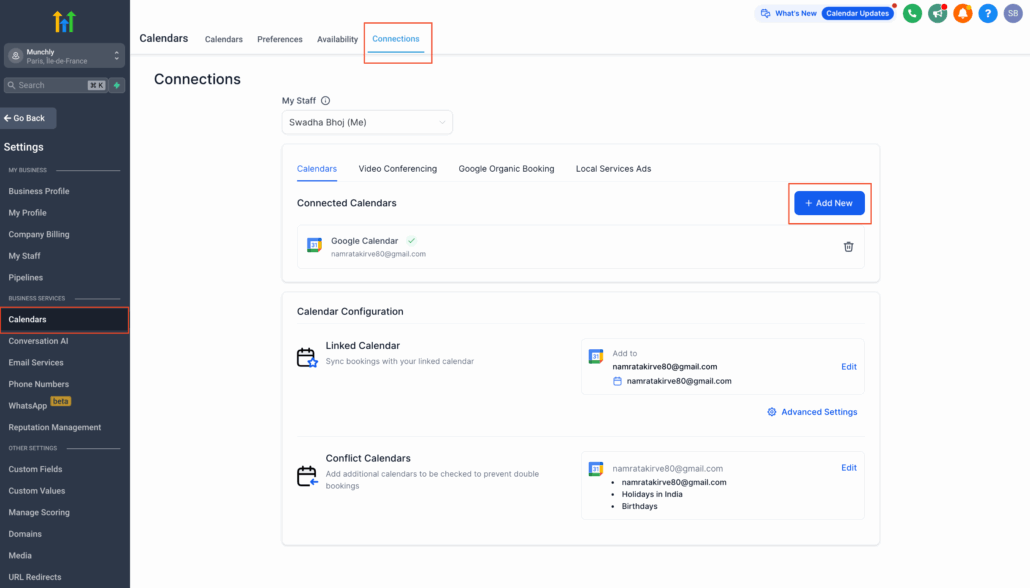 - Navigate to ‘Calendars’ > ‘Calendar Settings’ > ‘Connections.’