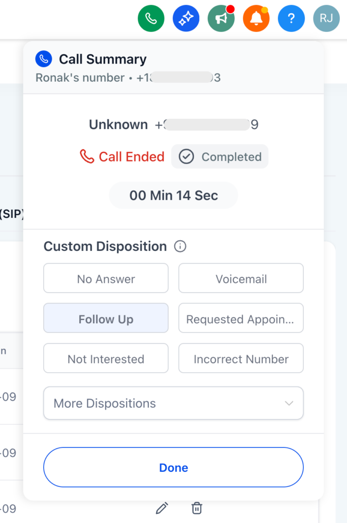 Custom Dispositions: Choose an outcome for your call and use it to trigger workflows.