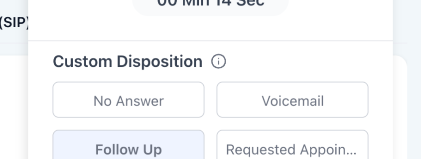 - Post-call picker in the Web Dialer: select one disposition (e.g. Follow Up).