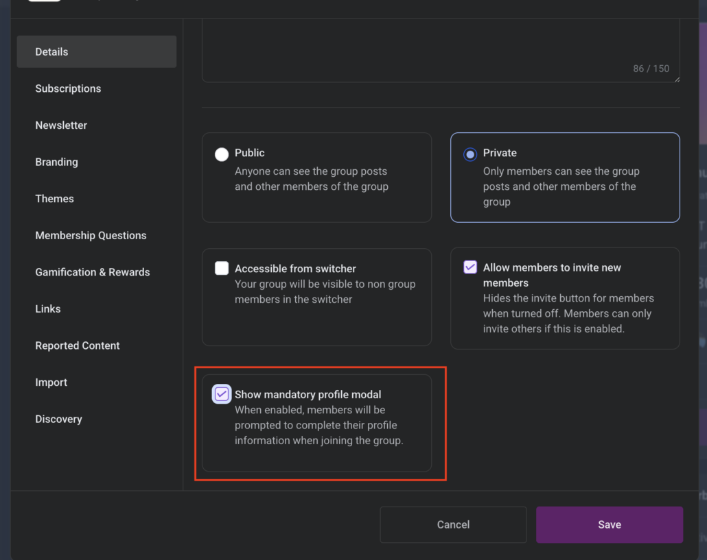 - **New Group Setting: Show Mandatory Profile Modal**