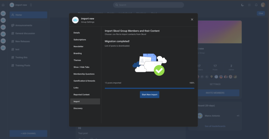 - Group owners/admins can now import multiple Skool groups into a single group.