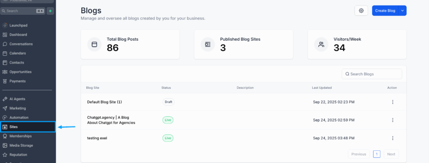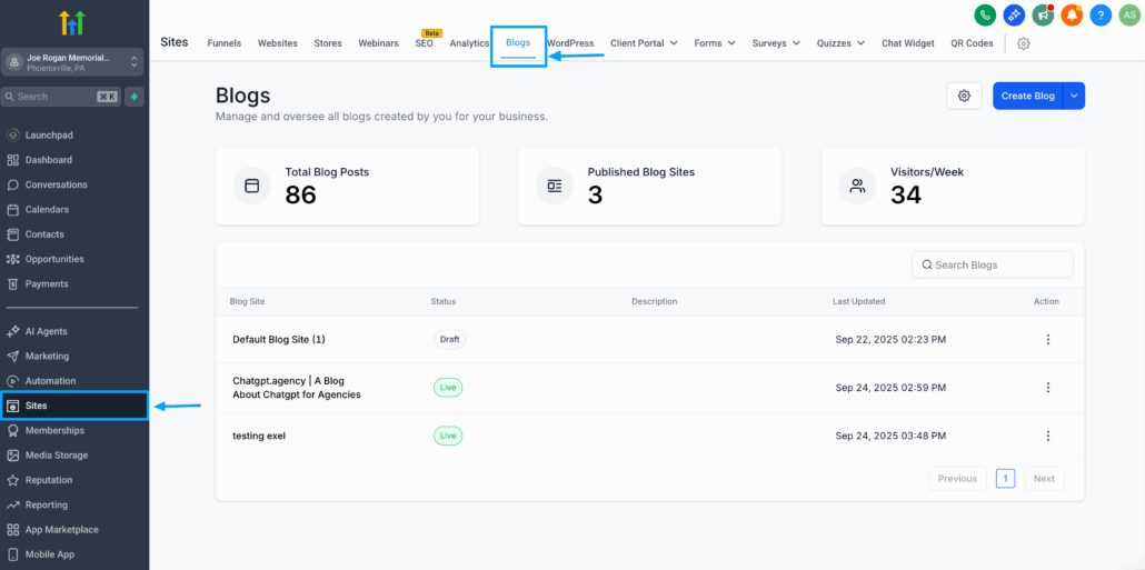 Click on the Blog Site, navigate to New Post, and select “Import Blog Posts from CSV.”