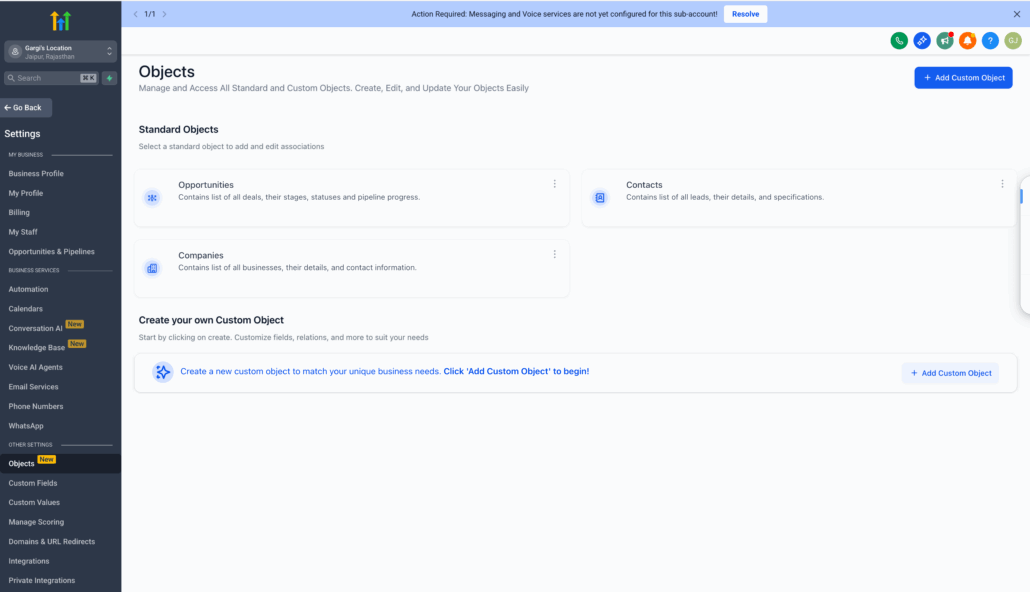 - Navigate to Settings at the location level (bottom side panel).