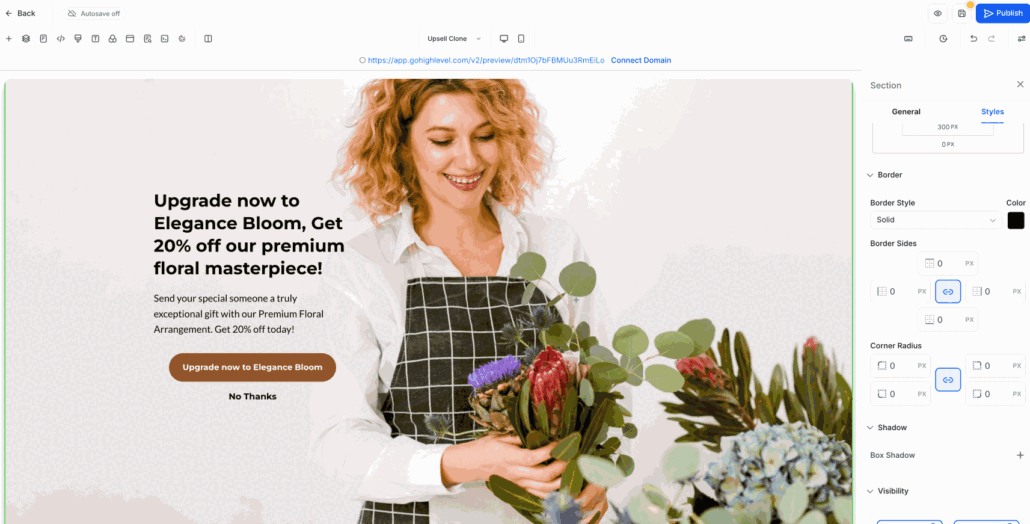 - Within the element’s style settings, navigate to the Border section to modify the border width, radius, style, and colour.