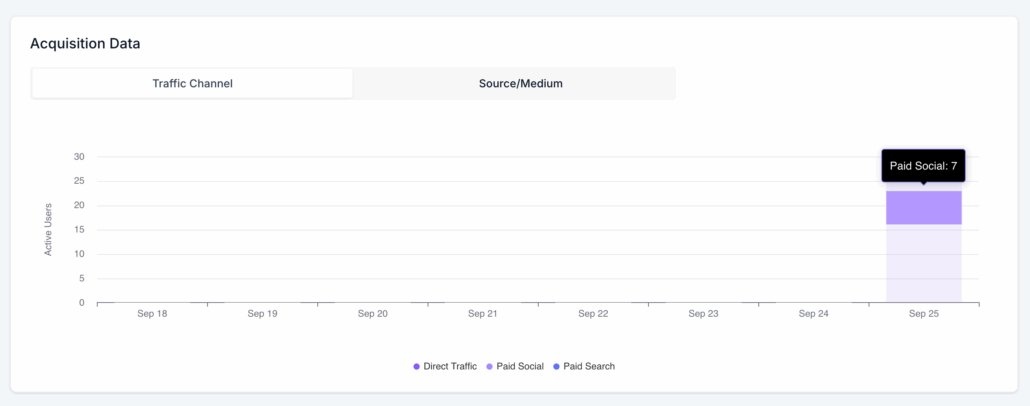 See where your visitors come from at a glance – compare Paid vs Organic, track trends over time, and delve into specific days or channels.