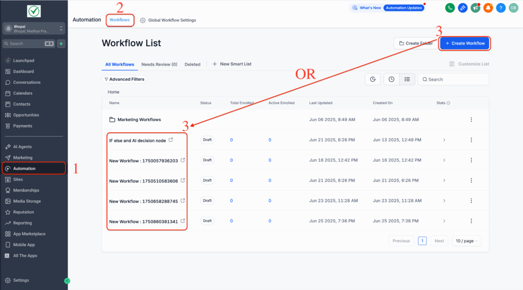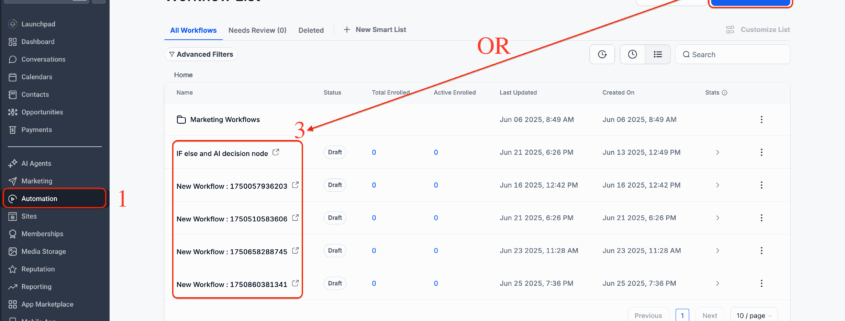 - Navigate to Automation → Workflows and open any workflow.