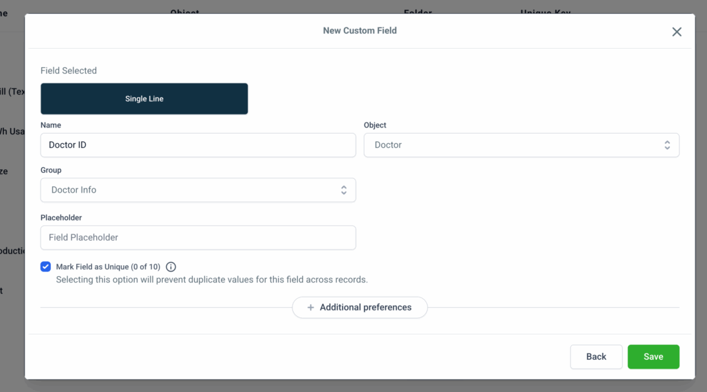Unique Field Option: You can now mark a custom field as “Unique” during its creation.