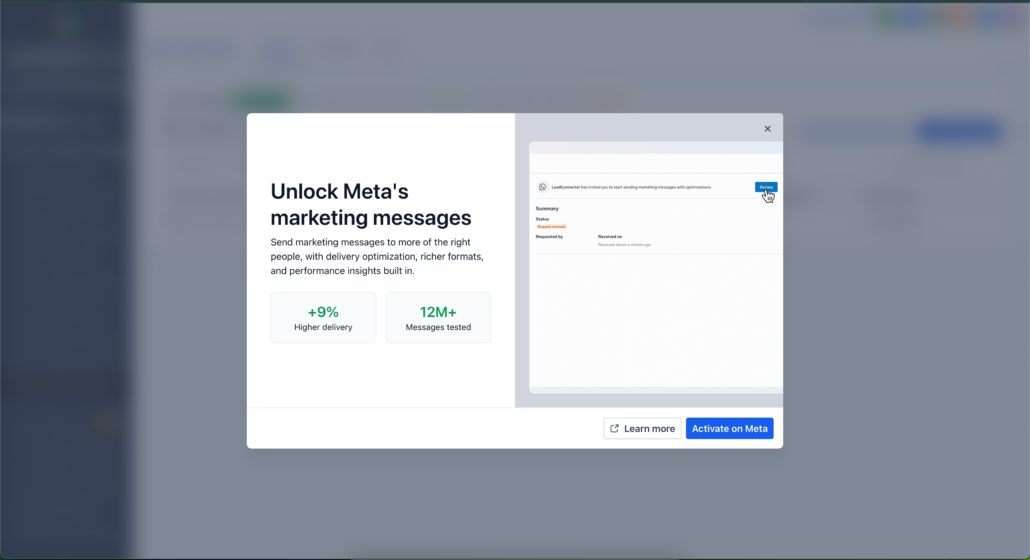 - A prompt to enhance ROI with Marketing Messages API will appear — click