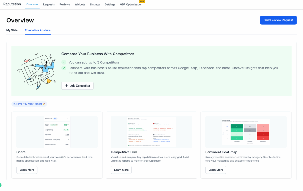 We’re excited to launch Competitor Analysis — a powerful tool that allows you to benchmark your business against local competitors and gain insights from reviews to stay ahead.