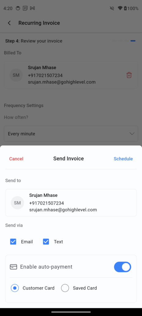 Mobile App – Auto-Payments for recurring invoices