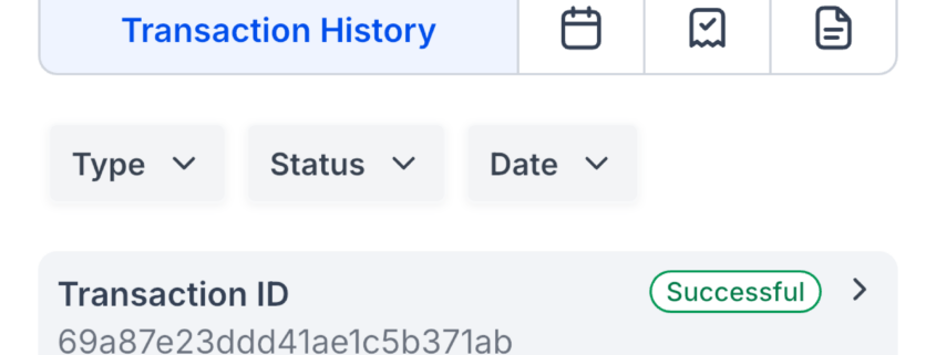 : Use filter chips to switch between payment types (e.g., Transactions / Invoices / Estimates / Subscriptions where applicable).