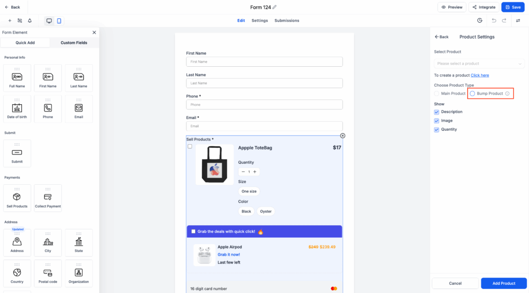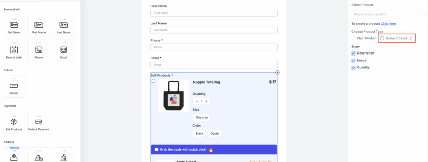 Supports Multiple Bump Products: Add more than one bump product to a single form or survey.
