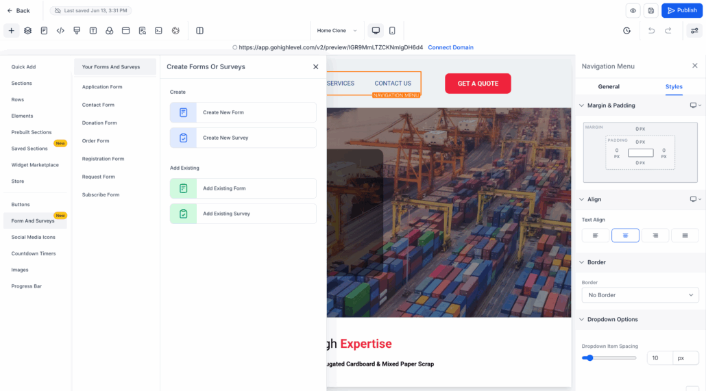 - This Forms and Surveys section will be available in funnel, website, and e-commerce builders.