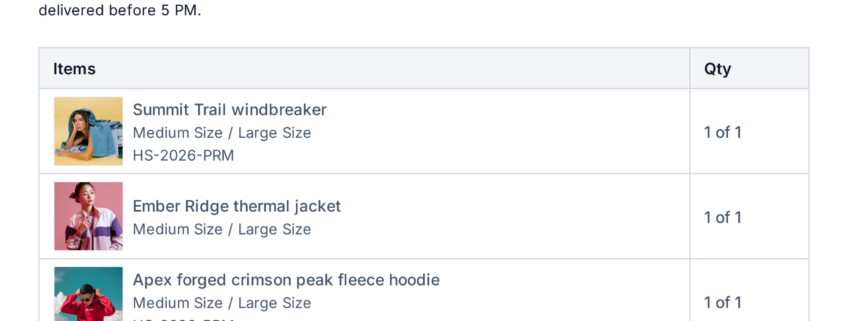 - Each product’s SKU is fetched from its setup and is clearly displayed for easy identification during fulfilment.