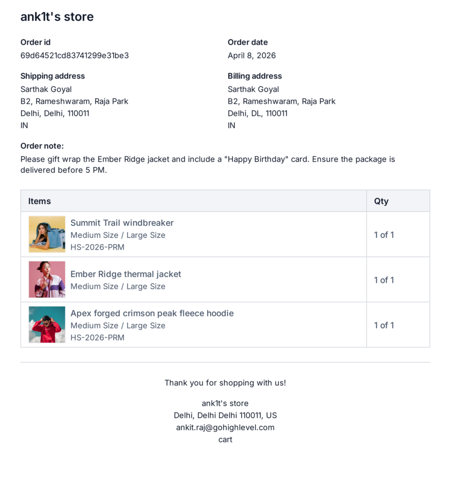 We’ve enhanced the packing slip to include Order Notes and SKU (Stock Keeping Unit). This update brings it in line with standards seen on other eCommerce platforms, improving clarity for merchants during fulfilment.
