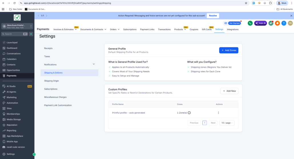 - Ensure products remain assigned to the Printful profile to enable shipping rates at checkout.