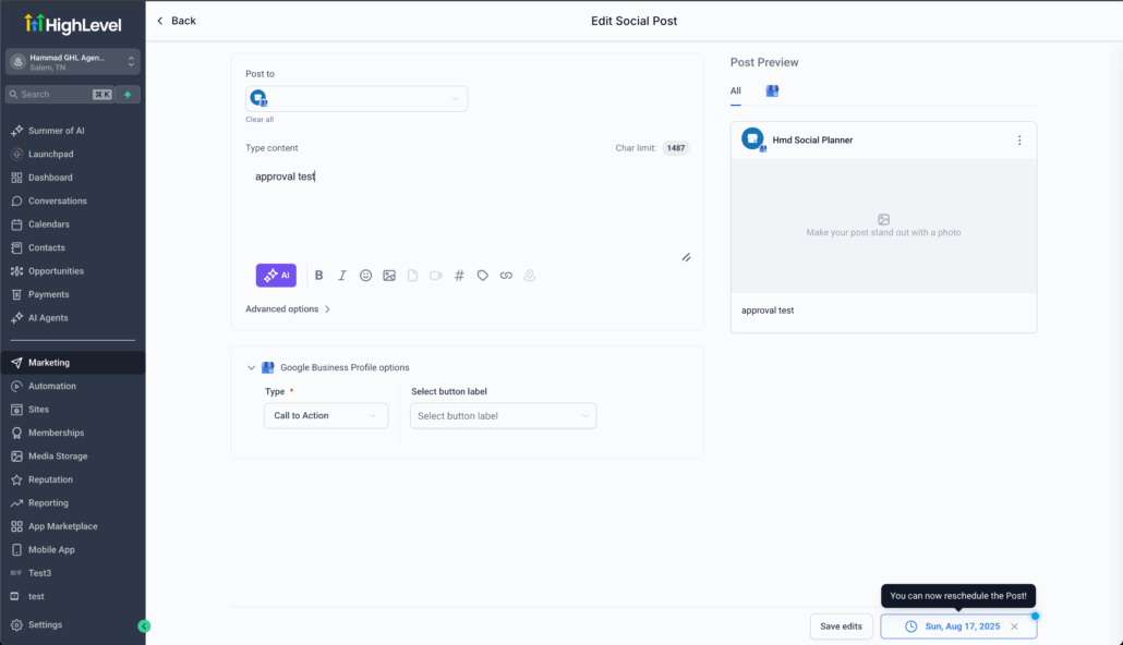 🗓️Reschedule Post in Approval Flow