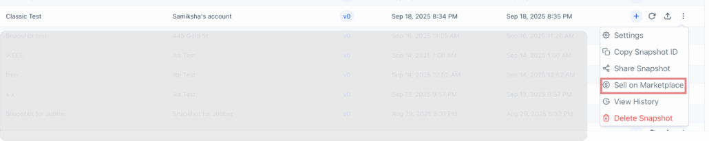 We’ve introduced a new in-flow ‘Sell on Marketplace’ feature for Snapshots. You can now list a snapshot on the Marketplace directly from Account Snapshots, eliminating the need to jump to the Developer Portal, copy links, or frequently toggle between screens.