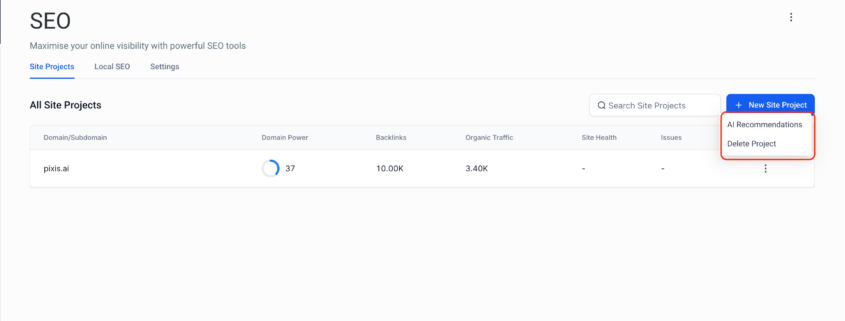 We’re introducing the ability to delete Site Projects in SEO, giving you greater flexibility to manage your SEO audits. This enhancement addresses a key limitation: the four-site quota cap. Now, if you’ve reached your quota and want to audit a different site, you can delete an existing Site Project to free up space and continue optimising new properties without constraints.