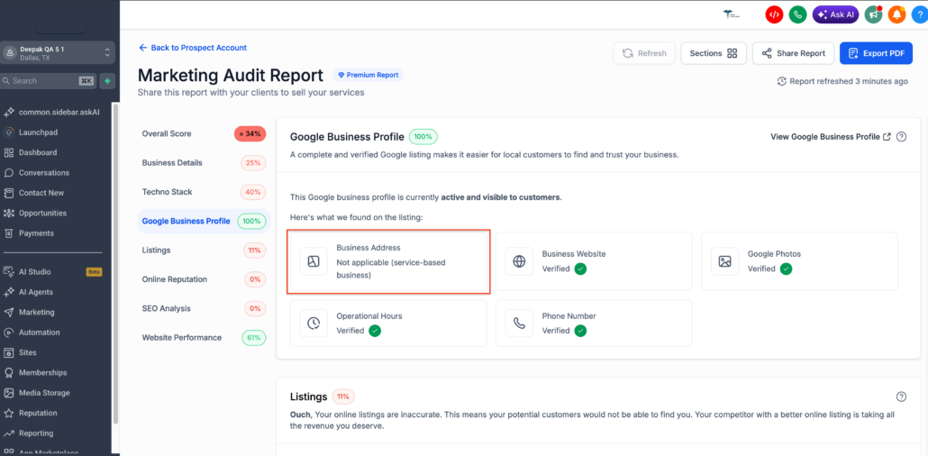 - You can generate complete Marketing Audit Reports for these businesses — just like any other.