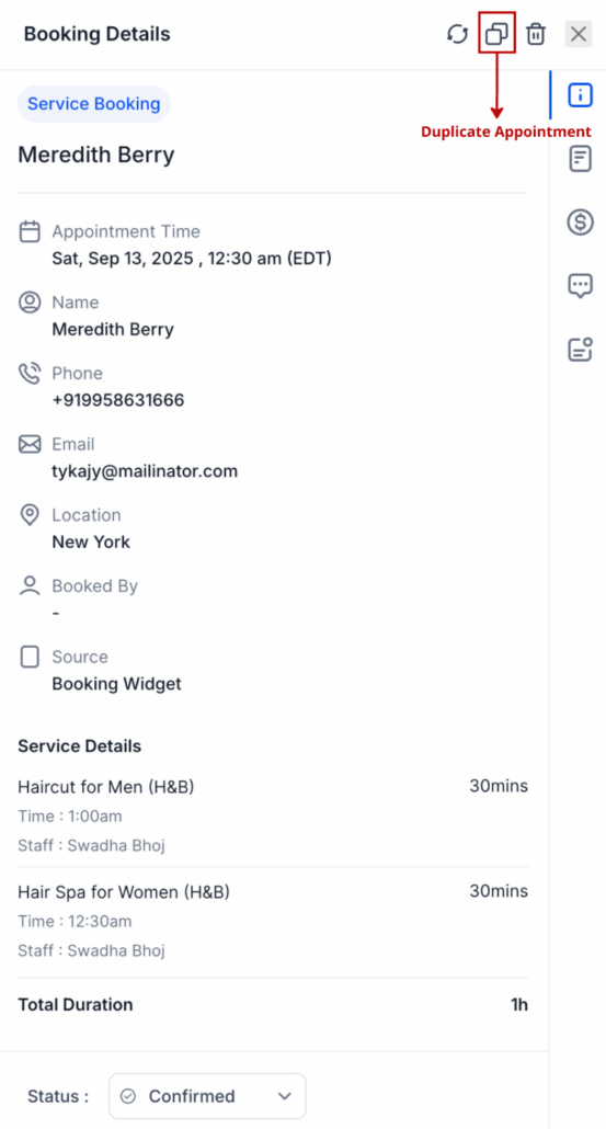 A new Duplicate Appointment button is now available in the appointment modal. With just one click, you can create a new booking that carries over all the same details. This makes it much quicker to set up repeat or similar appointments without the need to retype everything.