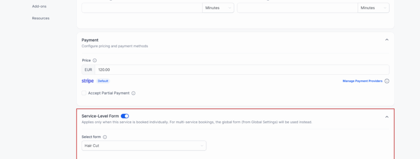 - Collect different information based on the service being booked, without duplicating or overloading a single global form.