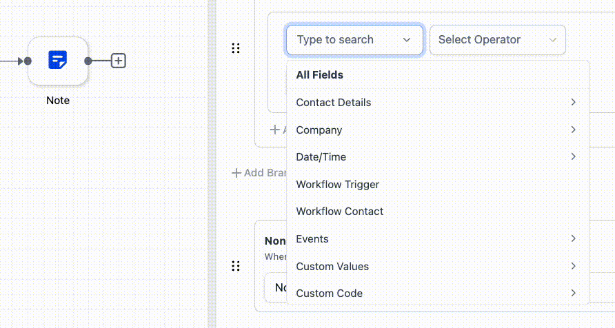When you search for a field, matching results can now appear even if that field is located inside a folder or subfolder. The picker also employs a more consistent dropdown pattern across workflows, ensuring that finding and selecting fields remains uniform in both Custom Values and If/Else.