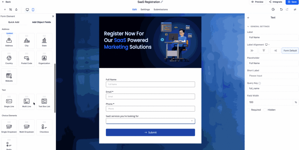 All updates are instantly visible in the builder for Forms, Surveys, and Quizzes, allowing you to refine the design before going live.