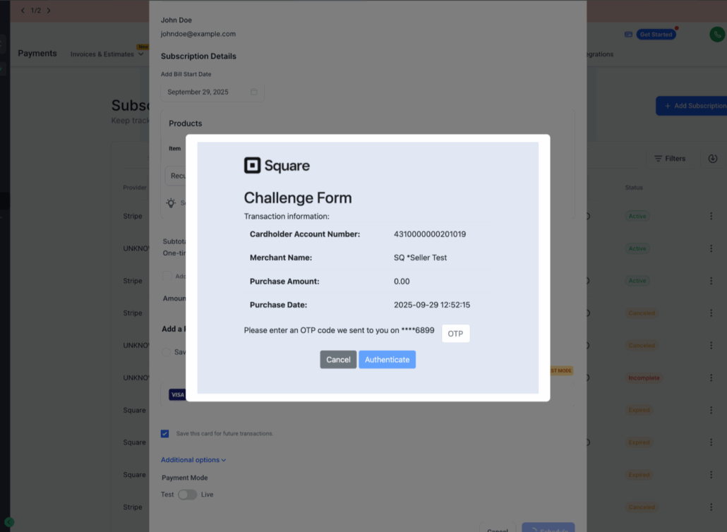 - Cards that require additional security checks (3D Secure) will now work seamlessly with NMI and Square.