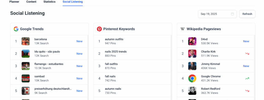 This update brings trend discovery and real-time insights from multiple platforms, helping you stay ahead of conversations, cultural moments, and viral content—all within Social Planner.