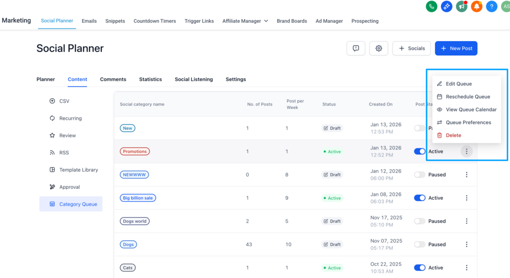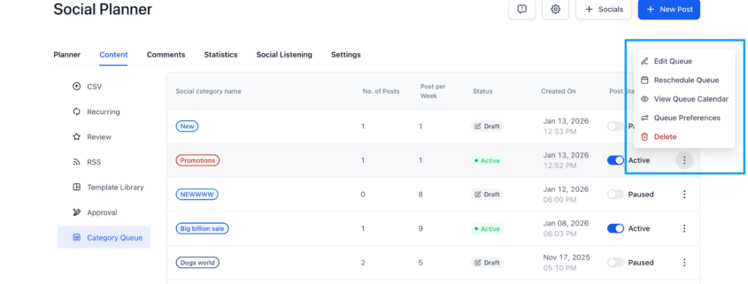 With this update, users can finally edit, reorder, reschedule, and visualise queues without needing to rebuild them from scratch. This makes the Category Queue more flexible, particularly for teams managing multiple brands, seasonal campaigns, and dynamic posting schedules.