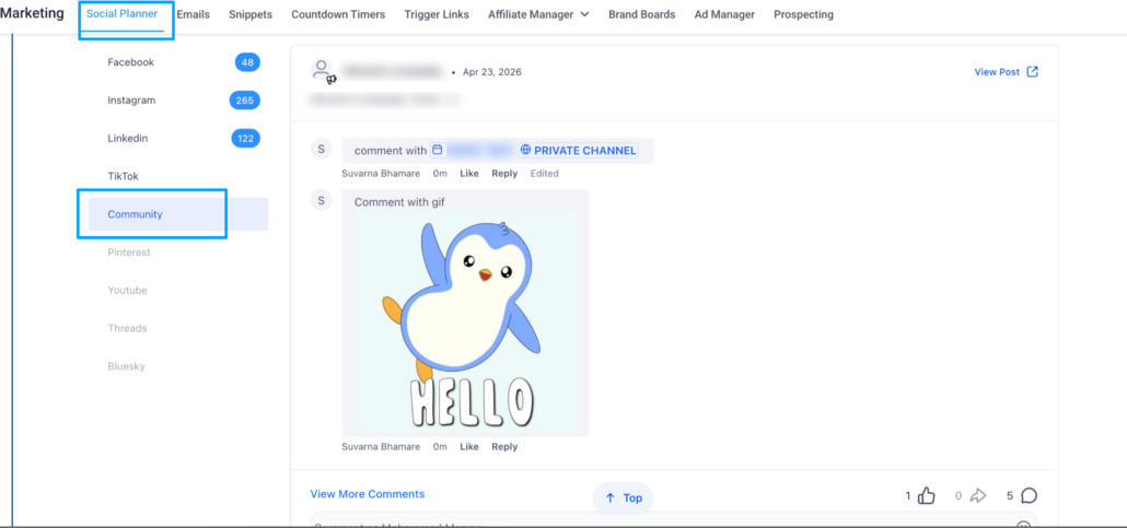 We have not only managed social comments but have also integrated community conversations into a single view. With this update, Comment Management now supports Communities, enabling you to view and respond to community comments directly from Social Planner.