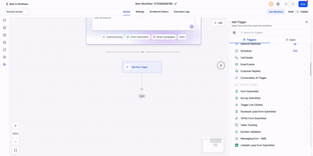 You can now drag and drop triggers and actions directly into the Workflow canvas from the sidebar. This enhancement to the UI/UX of the standard builder makes adding and connecting steps quicker and more seamless.