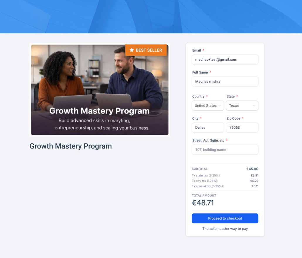 Taxes are now automatically calculated during checkout based on the user’s billing address, ensuring accurate pricing across various regions. Learners can view a detailed tax breakdown before completing their purchase, eliminating any surprises at the final stage.
