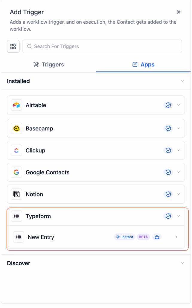 - In Workflows, search for “Typeform.”