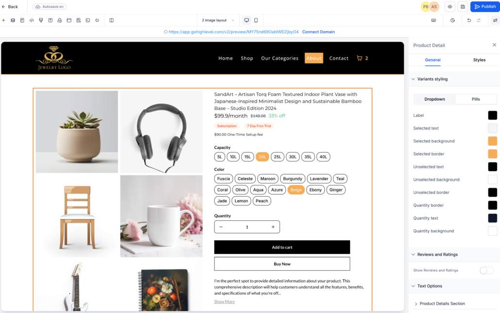 We’ve introduced flexible display options for product selectors on the Product Details Page (PDP), providing merchants with enhanced control over how customers select product variants and pricing options. The selector UI is now more visual, consistent, and optimised for various devices.