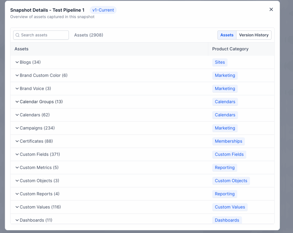 See all past versions of each Snapshot directly in the Snapshot details modal.