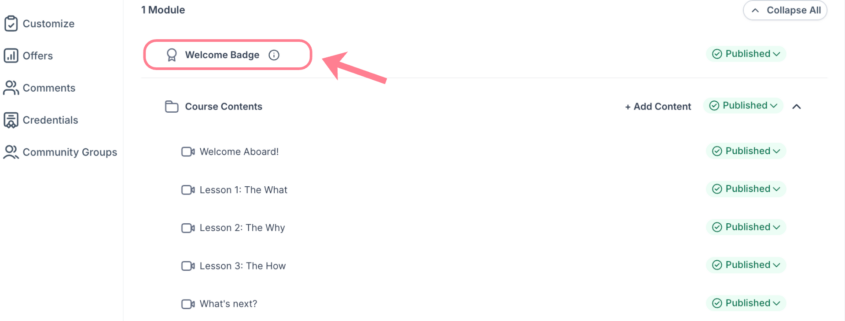 - Every new course now includes a pre-attached Welcome Badge.