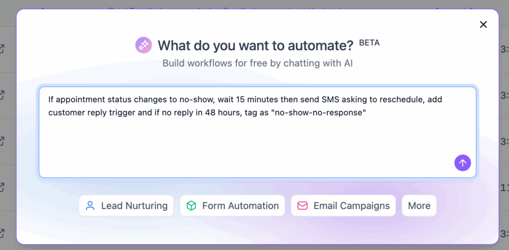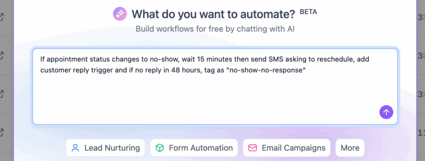 Workflow AI Builder allows you to create workflows simply by describing what you wish to automate in any language. The AI generates the entire workflow structure, including triggers, actions, wait steps, conditions, and even pre-written content.