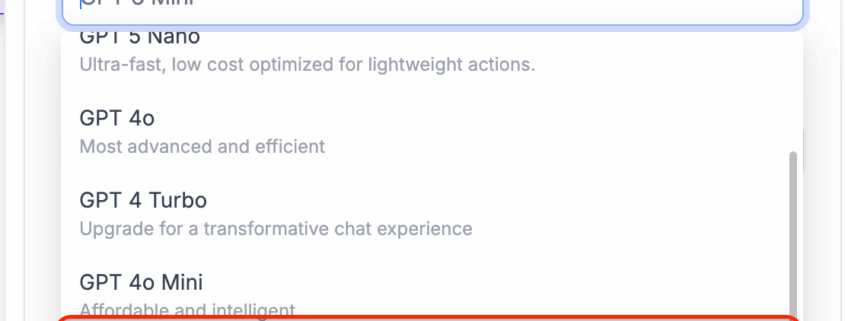 /in What's New?Introduction of GPT 5.1 Model We have now added the GPT 5.1 model to the GPT action in workflows. To access it, click the “+” icon and search for “GPT powered by OpenAI”. Next, click on the “Model” field and select GPT 5.1. GPT 5.1 Input Cost: £1.250 / 1M tokens GPT 5.1 Output Cost: […]