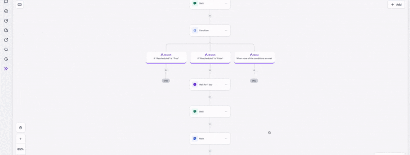You can now drag and move nodes directly inside the workflow canvas. This enhancement simplifies the process of reorganising actions and branches without the need to delete steps or use the right-click move option for each node. When you hover over a node, a 6-dot drag handle appears. Click and hold the handle, then slide […]