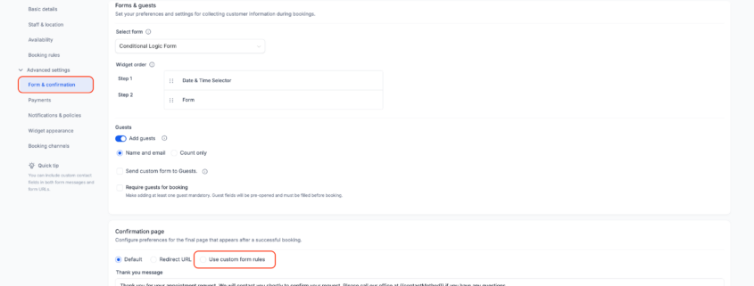 /in What's New? Calendar, FormsEnhanced Conditional Logic for Forms We’ve improved how form conditional logic operates within calendar booking flows when using custom forms. This update brings greater consistency, control, and reliability to your booking experience. Powerful Form Conditions Forms support robust conditions such as redirect to URL, custom messages, disqualifying leads, and show/hide fields. With this update, these […]
