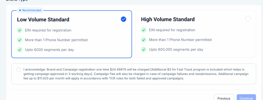 The Campaign Registry (TCR), which oversees A2P 10DLC messaging compliance in the U.S., has announced new fee updates that will take effect on 1st August 2025. These changes will be reflected in your billing through Clixio for all new brand registrations and campaign setups from that date onwards. The fees for brand registration and vetting […]