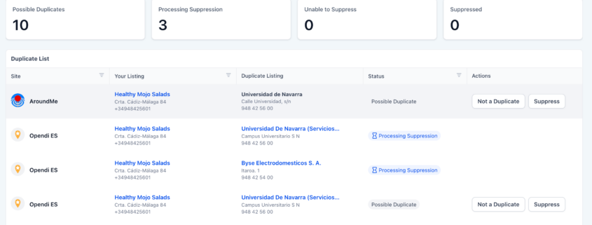 /in What's New? DashboardWe are excited to introduce **Duplicate Suppression**—a powerful tool designed to help businesses identify and eliminate duplicate listings across online directories. Duplicate listings can confuse customers, dilute your brand presence, and negatively impact local SEO rankings. Now, you can find, verify, and suppress these duplicates directly from your Clixio dashboard. <p>Multiple listings for the same […]