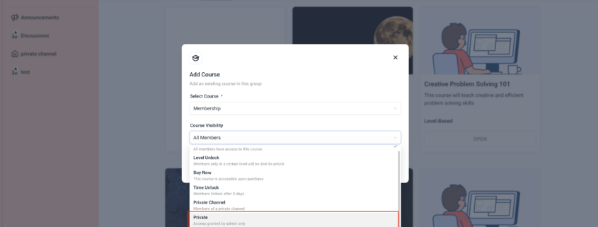 Communities Learning Tab- Private Course/ Member-Specific Course Access